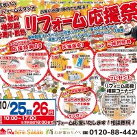 チラシはクリックで拡大します↓ 【10月25、26日限定】 秋の増改築・水廻り・断熱リフォーム応援祭 in リフォームササキ八戸東店 最大25万円相当の応援特典10 …
