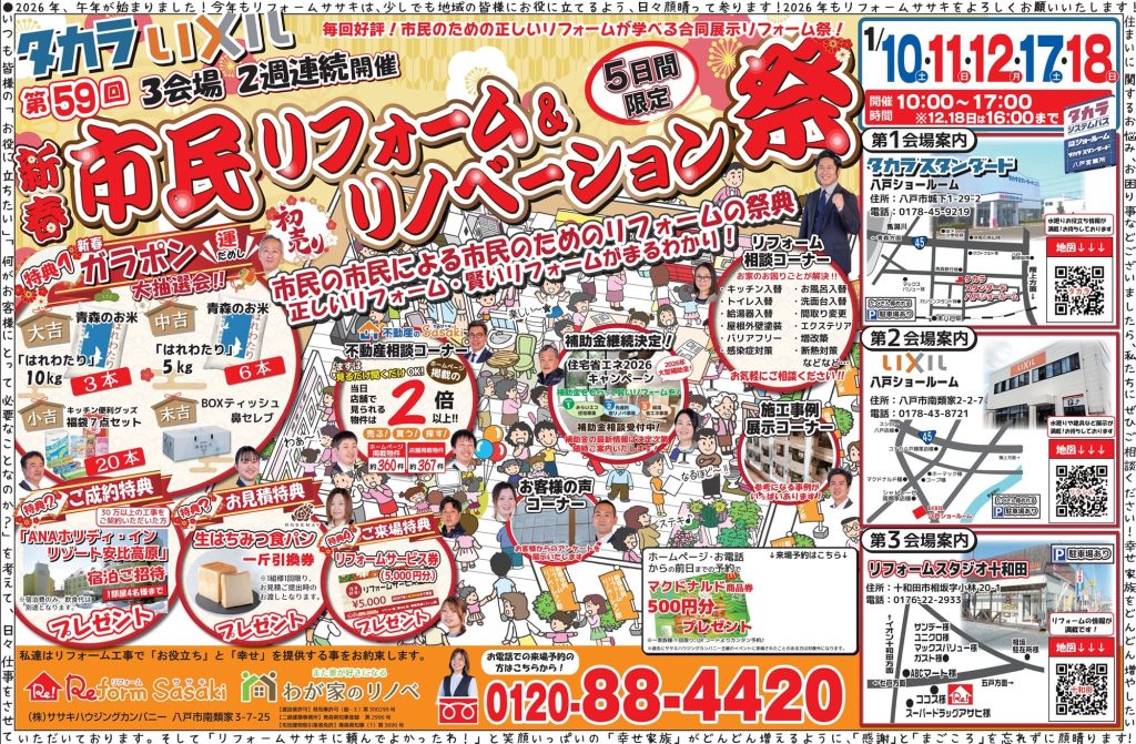 in タカラ八戸SR、リクシル八戸SR、リフォームササキ十和田店