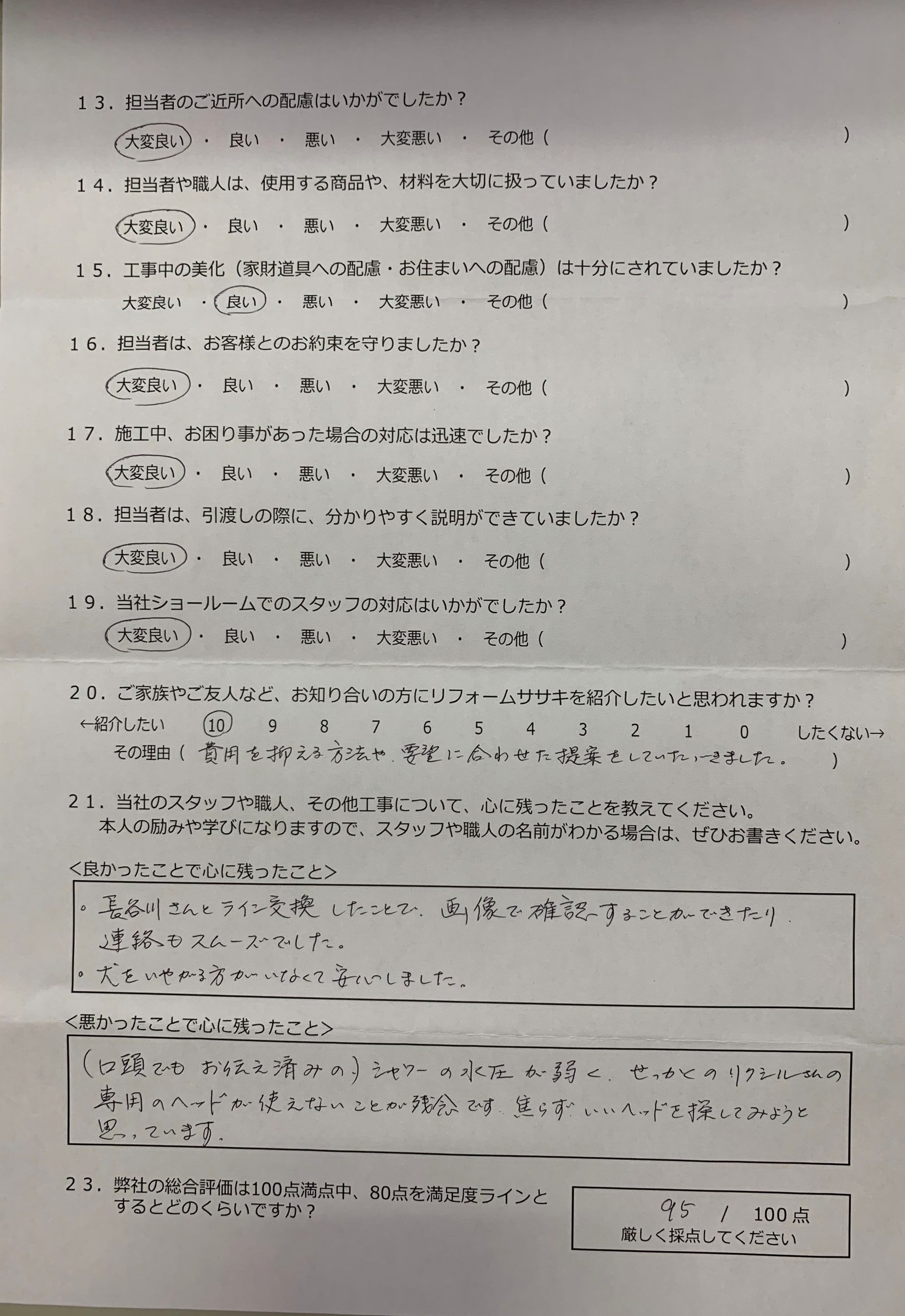 (口頭でもお伝え済みの)シャワーの水圧が弱く、せっかくのリクシルさんの専用ヘッドが使えないことが残念です。