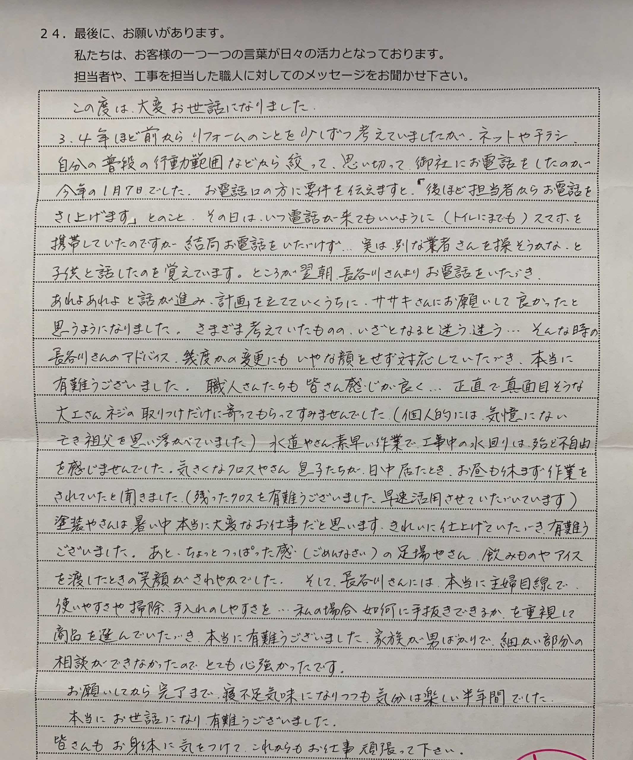 3~4年ほど前からリフォームのことを少しずつ考えていましたが、ネットやチラシ、自分の普段の行動範囲などから絞って、