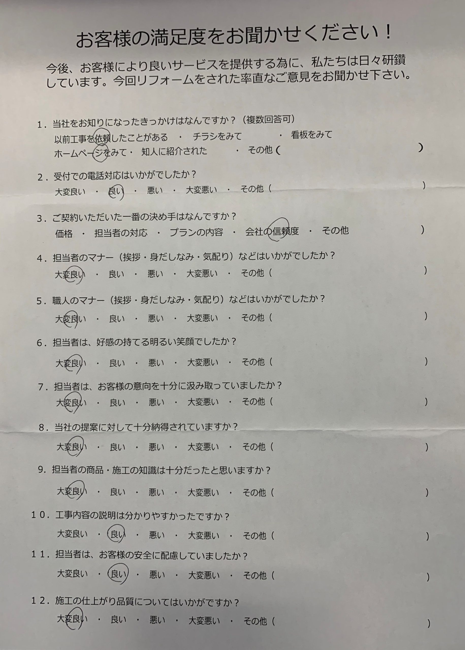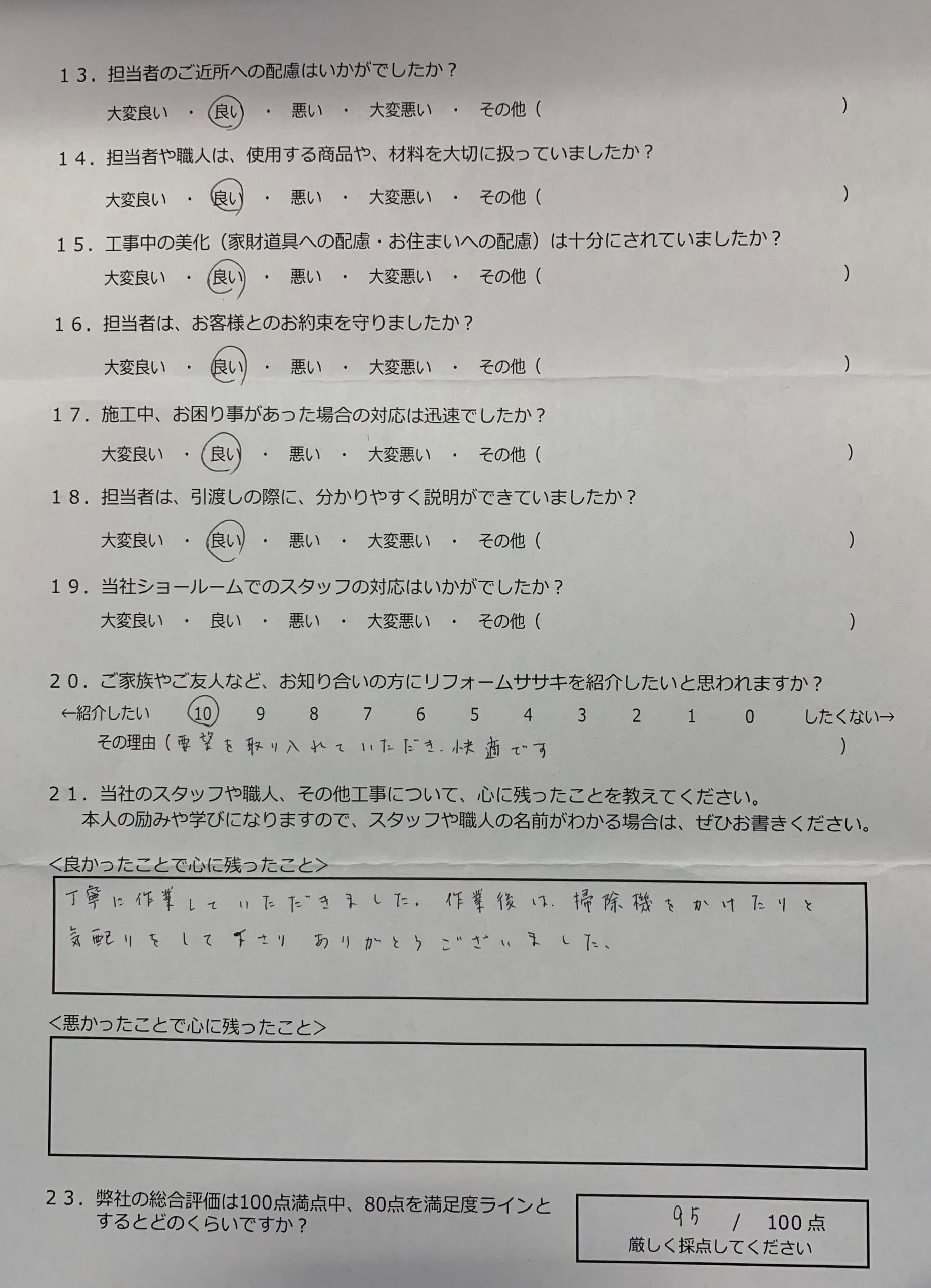 丁寧に作事していただきました。作事後は、掃除機をかけたりと気配りをして下さりありがとう。