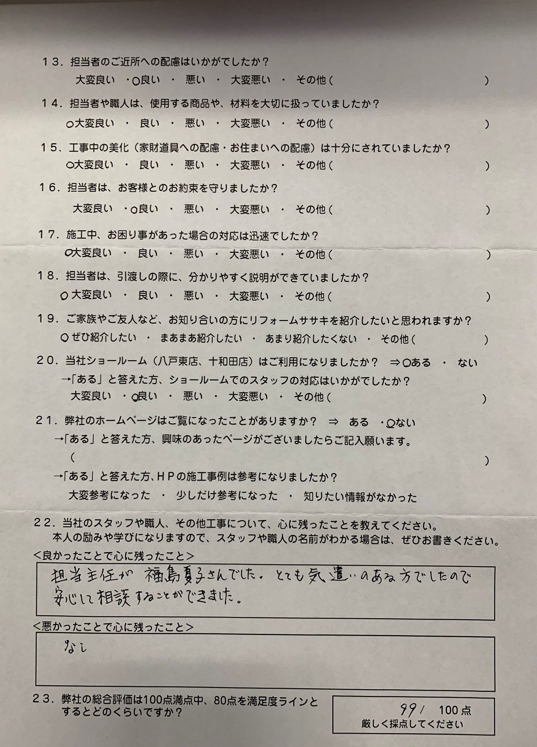 又主任の福島夏子さんの誠実な人柄にも、信頼の持てる対応だったことにも満足でした。