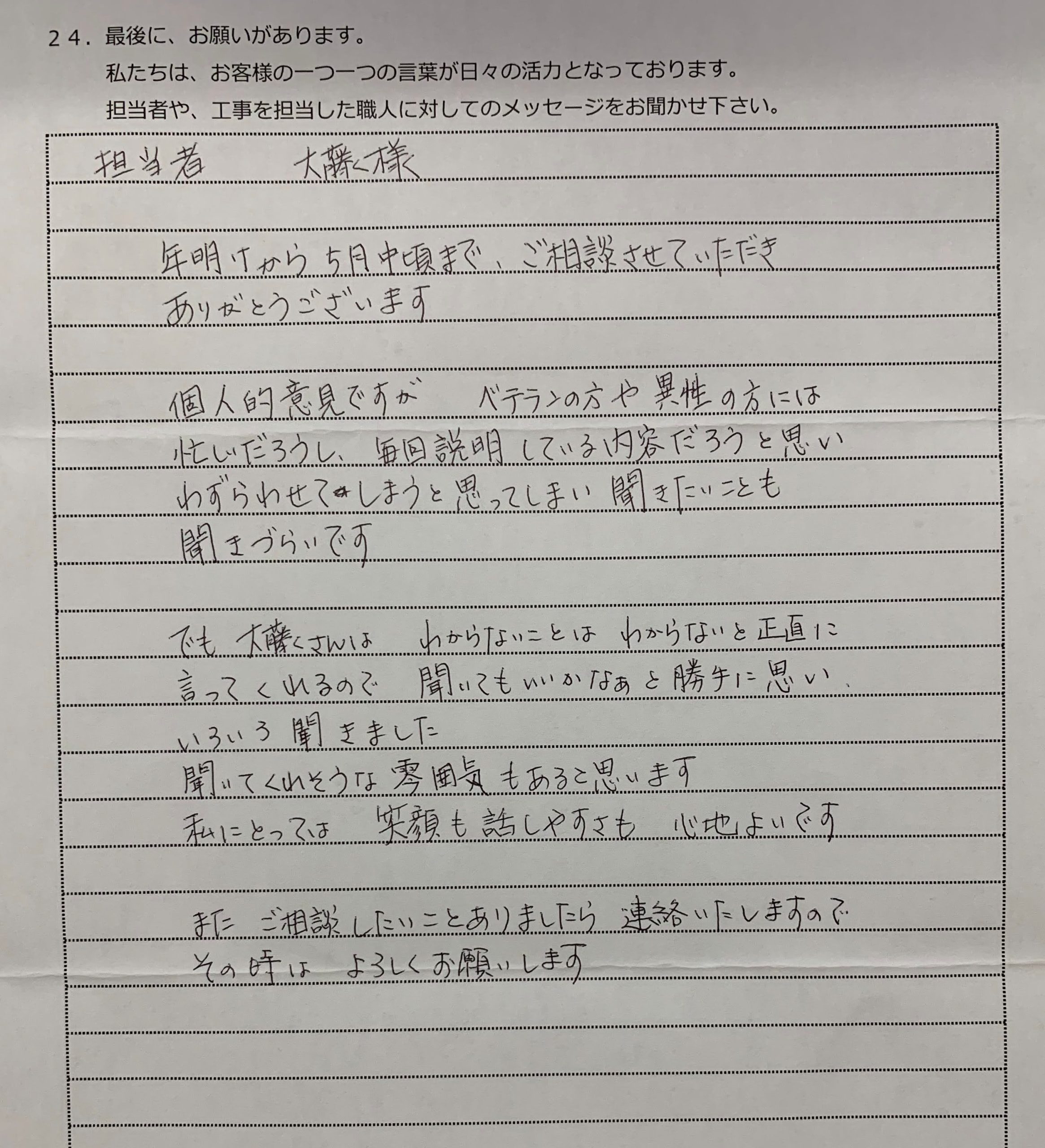 年明けから5月中頃まで、ご相談させていただきありがとうございます。