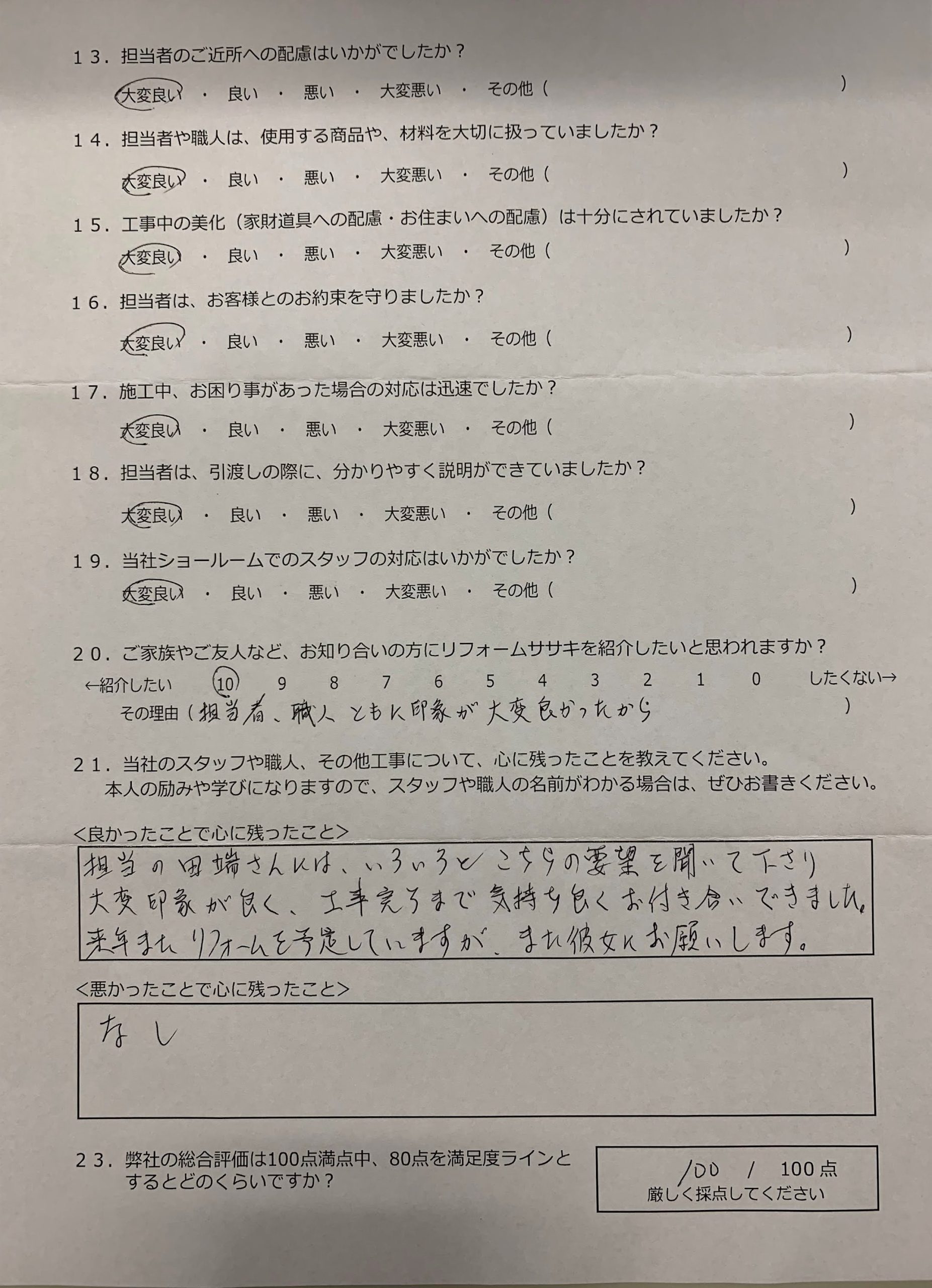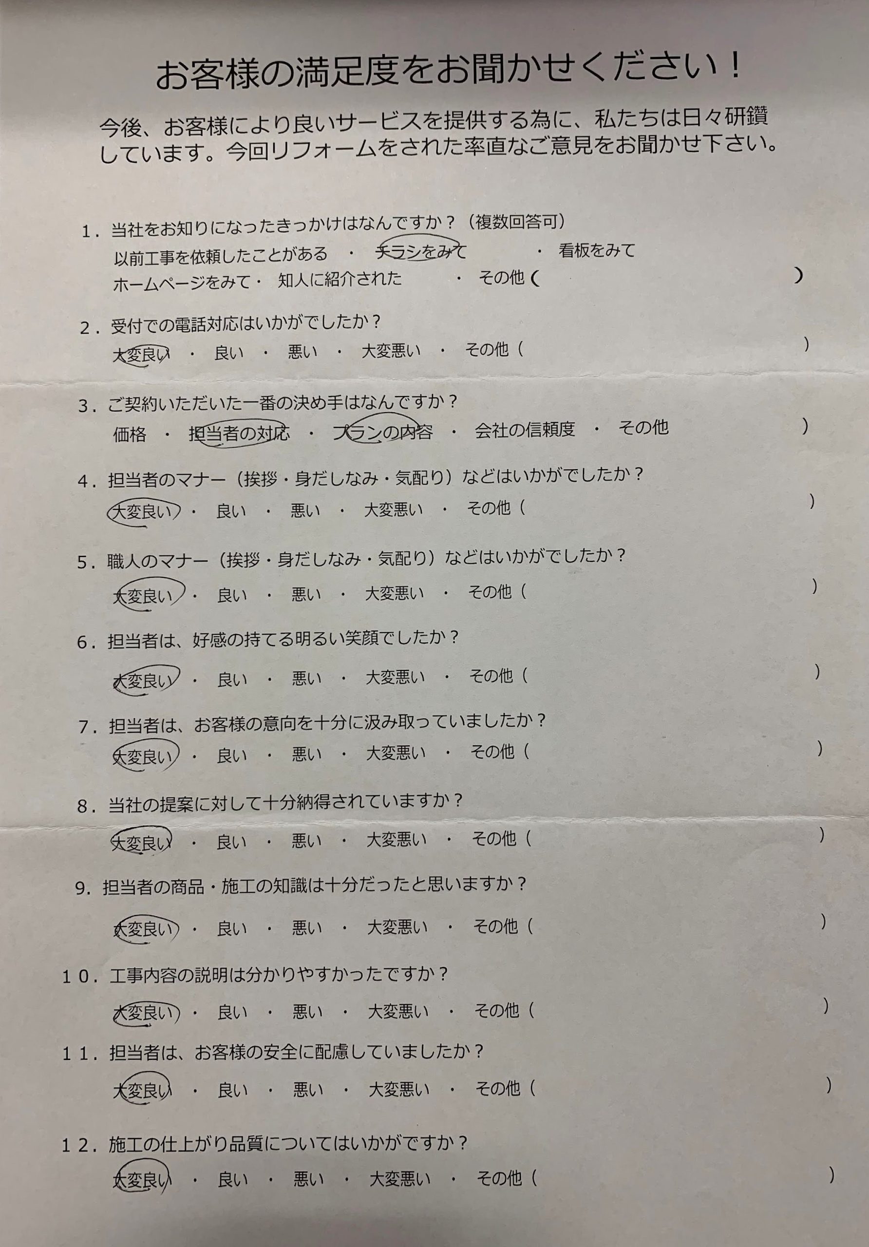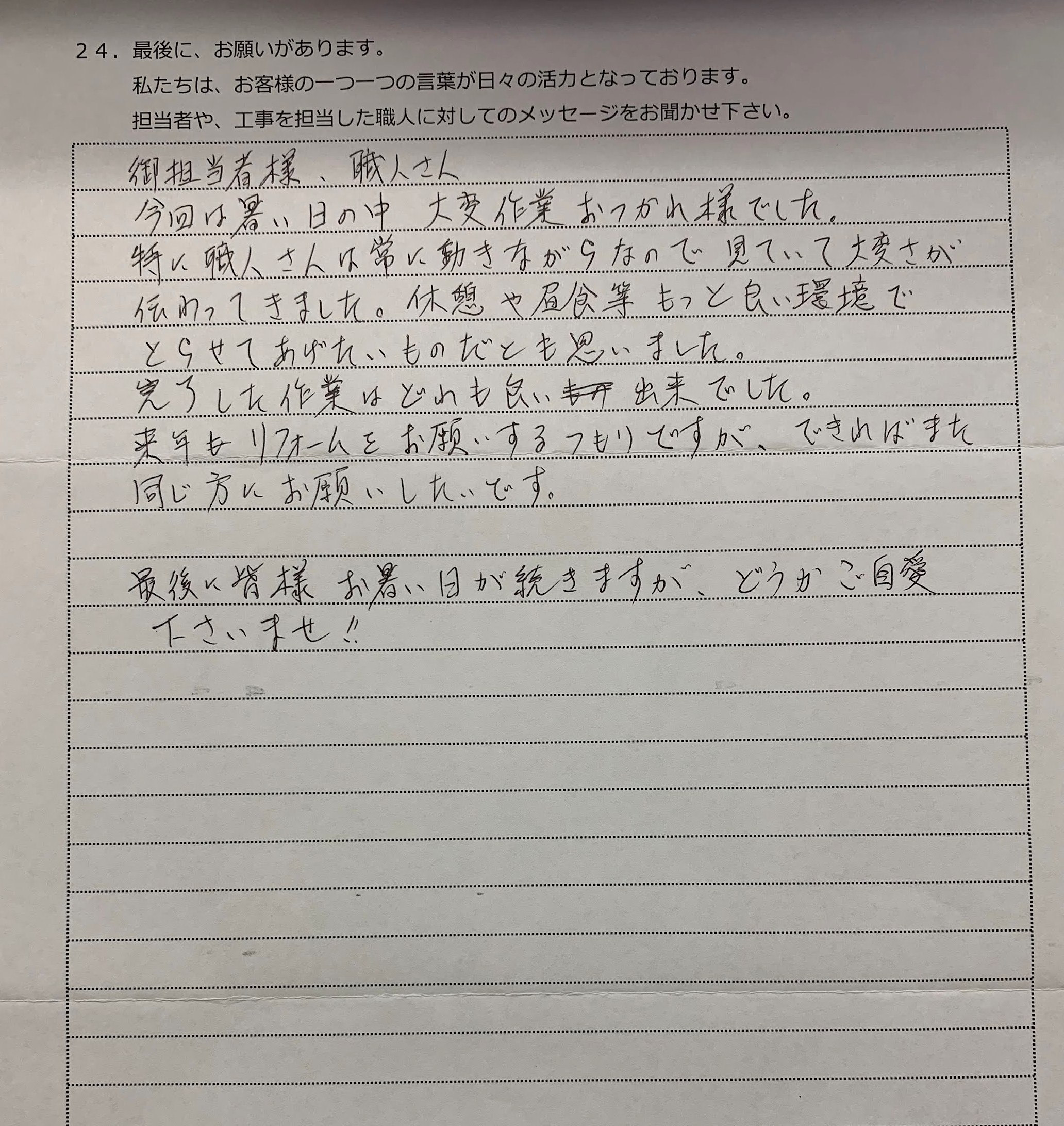 来年もリフォームをお願いするつもりですが、できればまた同じ方にお願いしたいです。