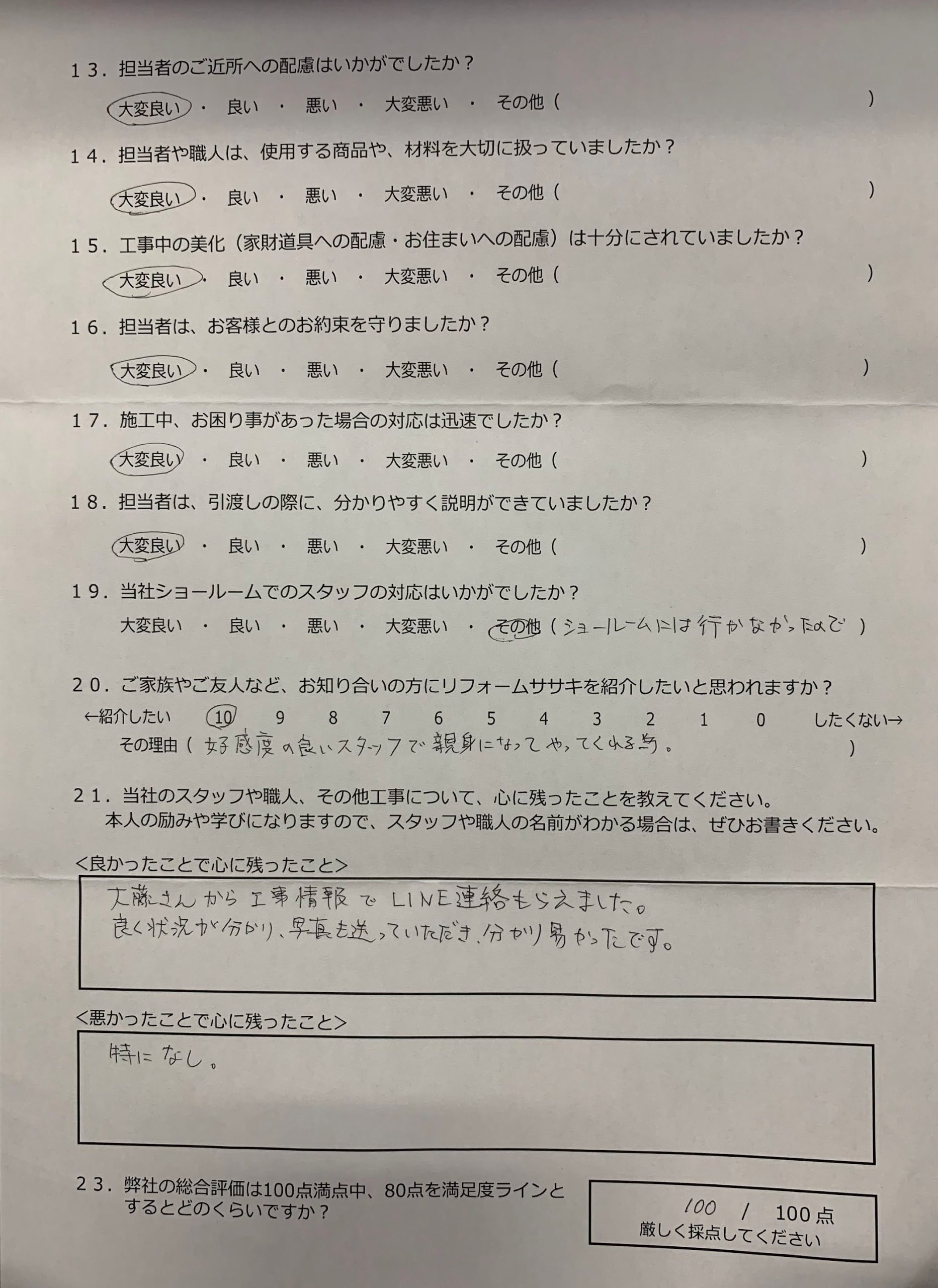 大藤さんから工事情報でLINE連絡もらえました。 良く状況が分かり、写真も送っていただき、分かり易かったです。