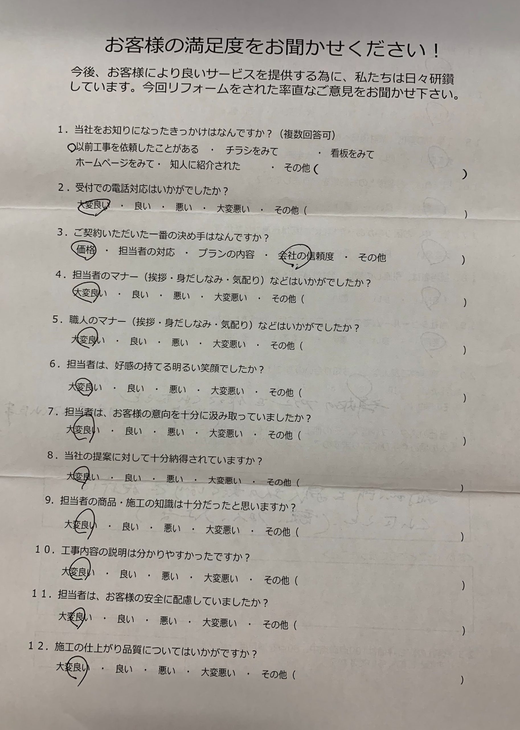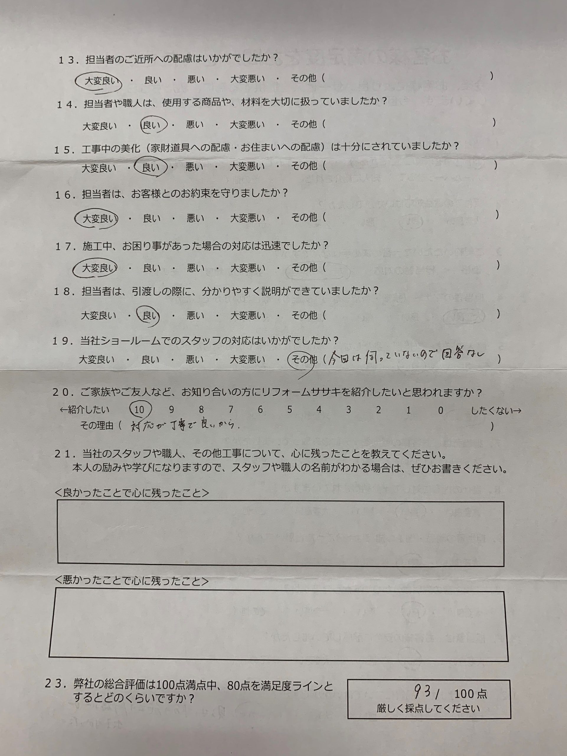 ・細い所を職人さんの気配りで、施行してくれたこと(電気、クロス、大工等) ・予算内でのプランを作ってくれた