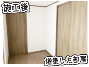 A様:息子夫婦が同居するのをきっかけに、部屋が足りなくなるので、増築を考えました。ちょっとしたキッチンも2階に設置して、2部屋を1部屋に改築もして過ごしやすいようにと計画しました。